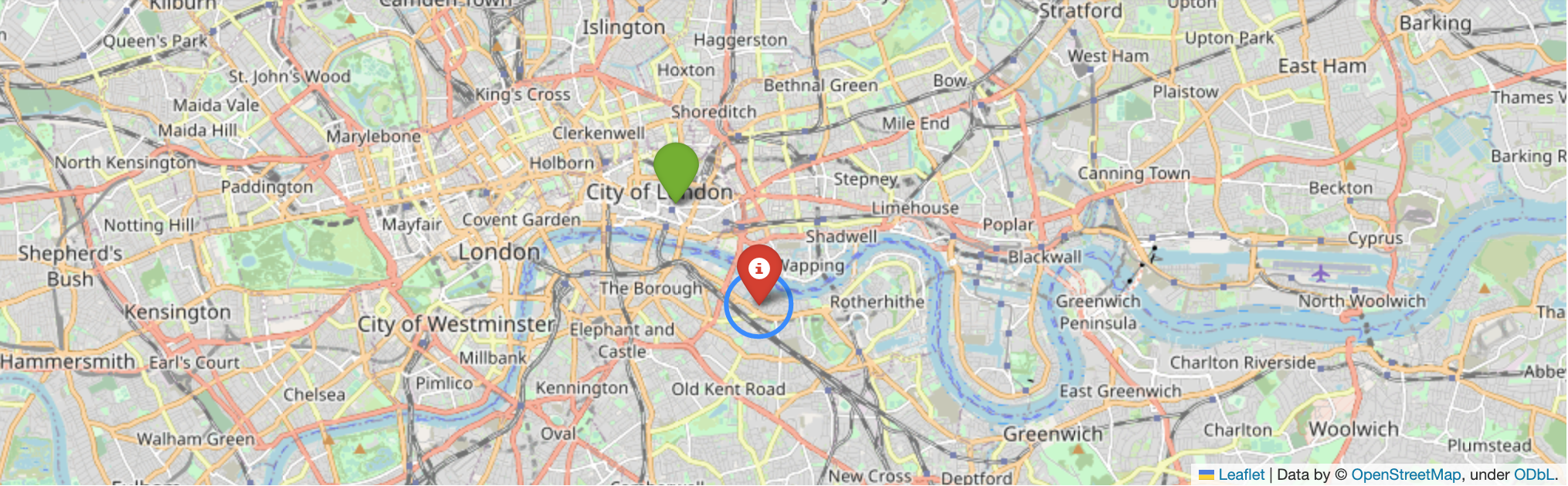 This type of distance can be a good alternative in cases where there is not a clear trajectory between the points. In the case of the Thames which is a long, winding river, the shortest distance between two points on the river may not be the shortest distance between the two points on the grid.