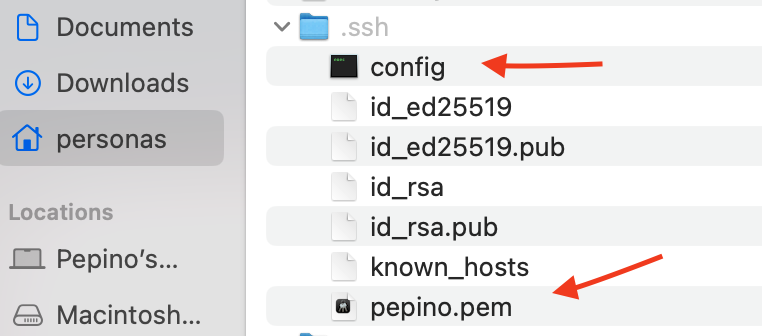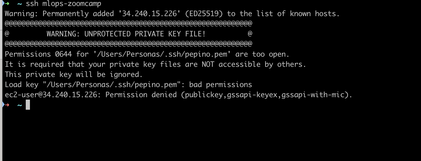 key pair created when launching the instance, in the .ssh (hidden)1 folder of the local machine and running the following command on the terminal
